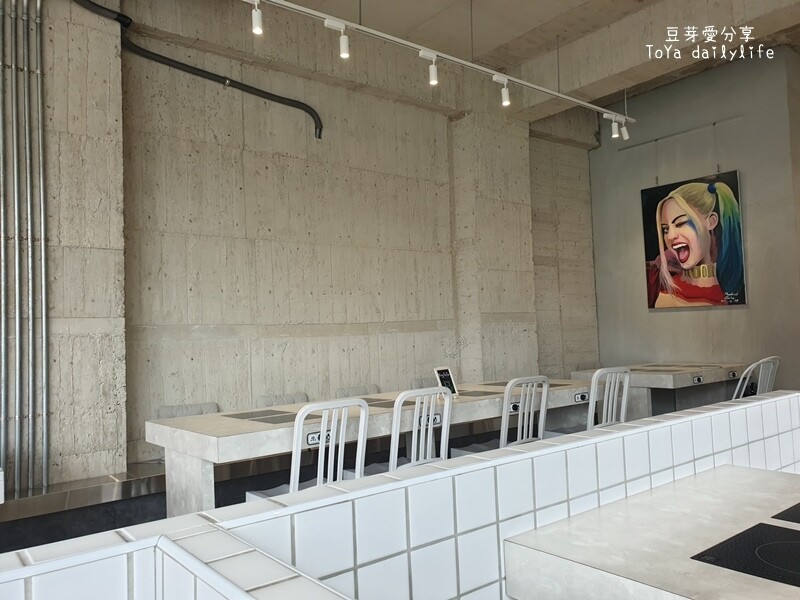 ▲有一桌是超大的座位區,可以坐10個人!牆上還有一幅超大的畫作