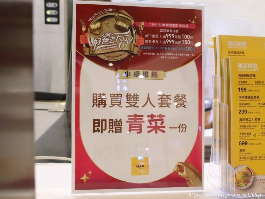 ▲海南雞二人套餐(海南隻半隻、肉骨茶×2、香蘭黃薑飯/清雞油飯×2)