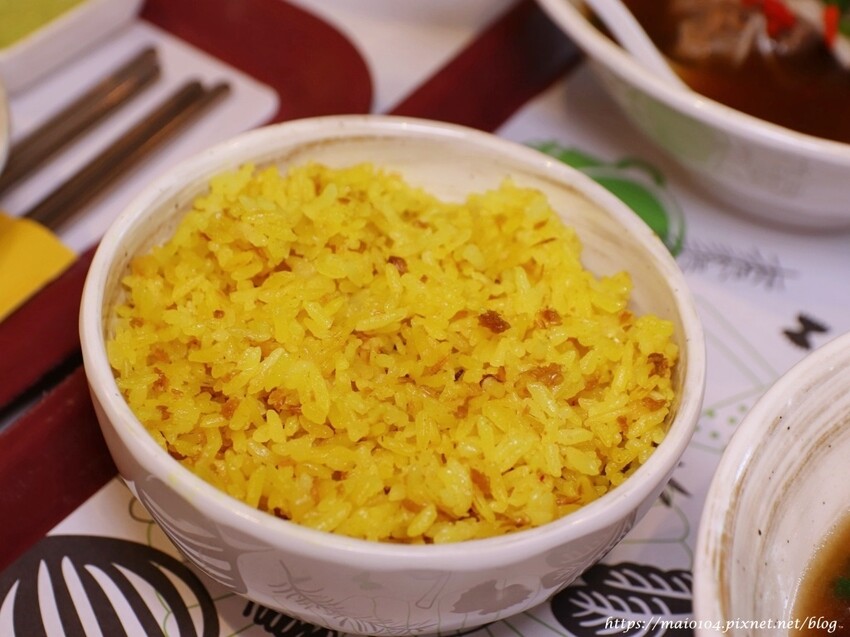 香蘭黃薑飯是使用香米,口感較有嚼勁