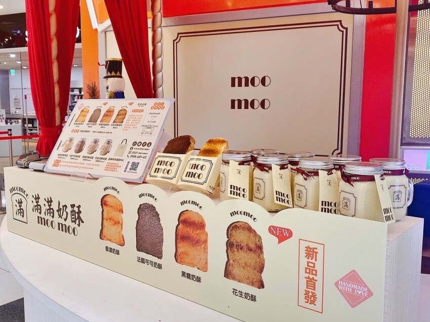 滿滿奶酥現場供應香濃奶酥、法國可可奶酥、黑糖奶酥及限定口味的花生奶酥等四種口味