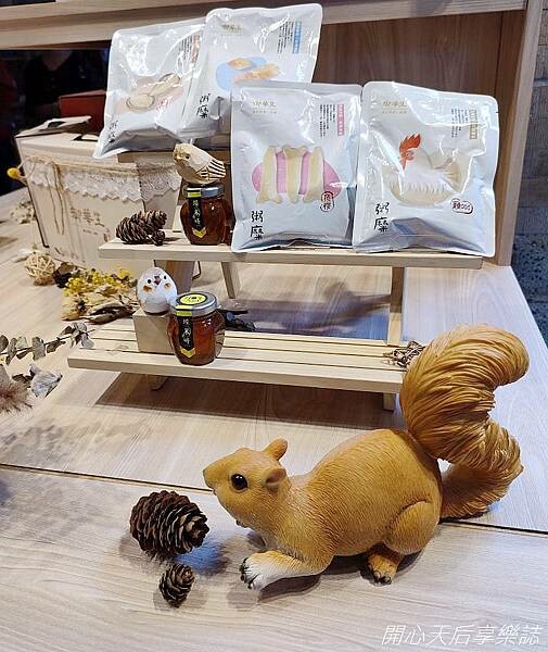 『埕米峰x御華生』時尚的店面外觀為老宅增添新意,也開創傳統南北貨的新風貌,連店門前的商品展示櫃都精心擺設,還帶入"松鼠愛吃堅果"的情境陳列,足見用心!
