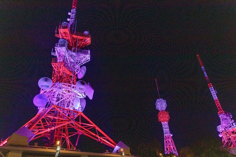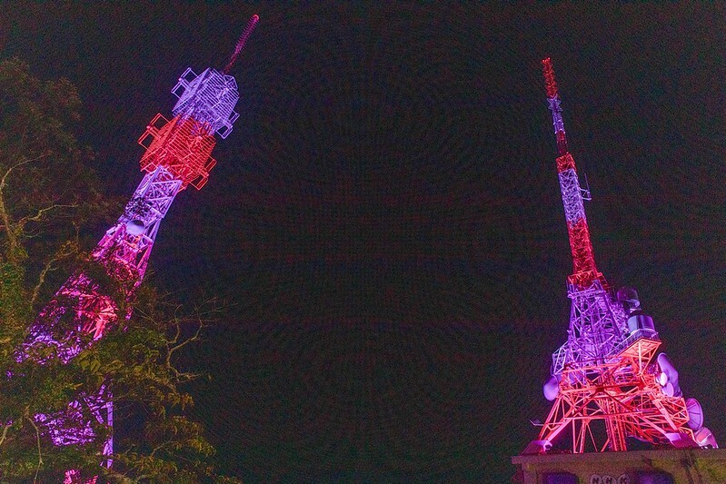 出了光之道就會看到三座大大的粉、紅、紫三色的電視訊號塔,1根、2根、3根都各來一張吧...。