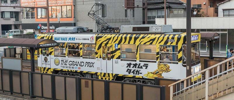 長崎電車初體驗,感覺很好,班次很多,車廂有多種不同的造型,然後這個和ボートレース大村(競艇)的虎紋路面電車好像是新的,我在網路上都找不到照片,有關這個據說發源自長崎的競艇可以參考ボートレース大村官網。