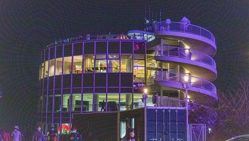 好的,接下來我們進到展望台裡面去看看,不曉得是不是因為疫情還沒完全解除,裡面只有一家賣飲料、輕食的店,但最少可以避避入夜有一點微冷的晚風。