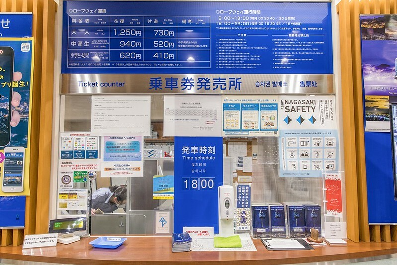 票價是單程720円、來回1250円,中學生大概是八折,小學生六折,纜車約莫是15分鐘一班,售票台有清楚的標示下一班纜車到達的時間,最終班則是晚上十點左右。