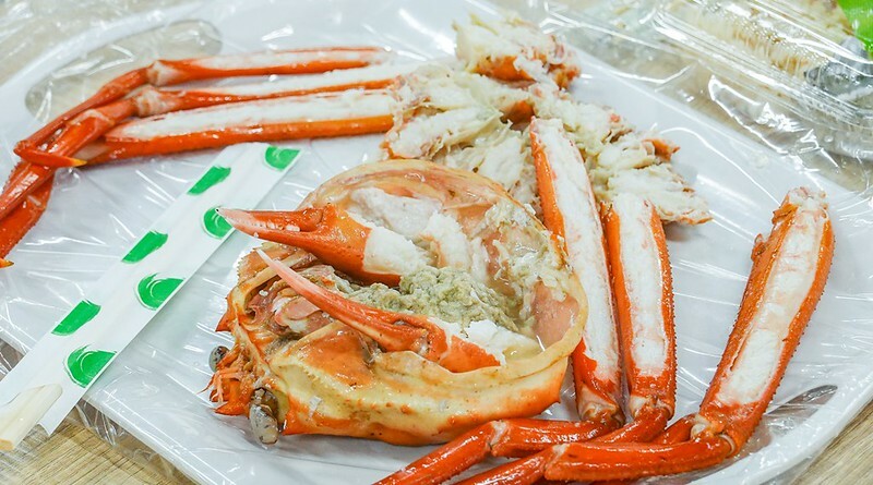 そのまま的意思是就這樣,簡單說就是這些螃蟹可以直接吃,不用再煮過,如果是遊客因為沒地方煮,直接買這樣的蟹是最理想的。說到這,你可能會問,紅楚蟹和松葉蟹到底有什麼分別?簡單的區分就是松葉蟹比較貴....認真說,兩種是遠親,松葉蟹嚴格來說算是楚蟹的一種,兩者相較紅楚蟹比較瘦長、松葉蟹看起來比較厚實,就像王哥和柳哥....。比較要注意的是成熟的雄蟹稱為「松葉蟹」(肉多味甜),雌性稱為「親蟹」體型較小,主要吃得是美味的蟹黃。