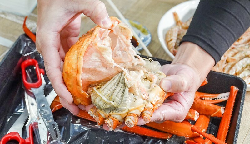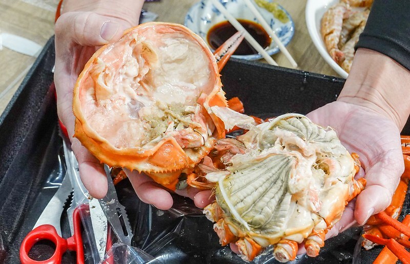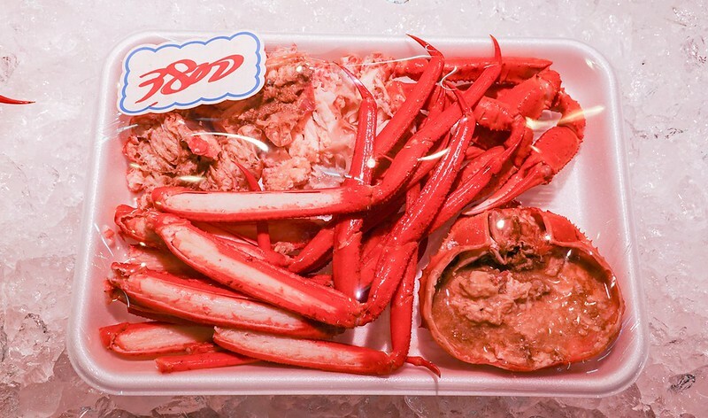 除了整隻新鮮的鳥取蟹外,也會有只賣螃蟹身體(上面寫頭),或是只賣腳的,也有像這樣已經幫你拆蟹好的,不想搞的滿手都是海鮮味的,像這樣貼心的一整盒倒是一種選擇。