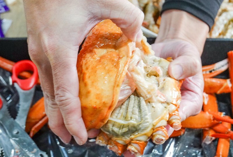 四五個人,每人挑一隻,這麼狂的吃法大概也只有在這能行...來來來,剪刀、石頭、布,贏得人先選。