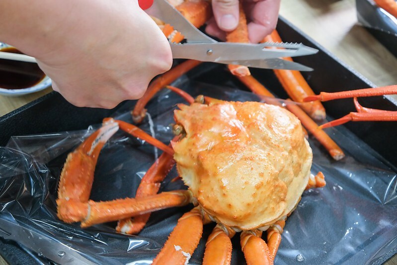 吃法就像剛剛說的そのまま,用剪刀(店家附的,吃完再拿回去還)先把腳五蟹分屍....。