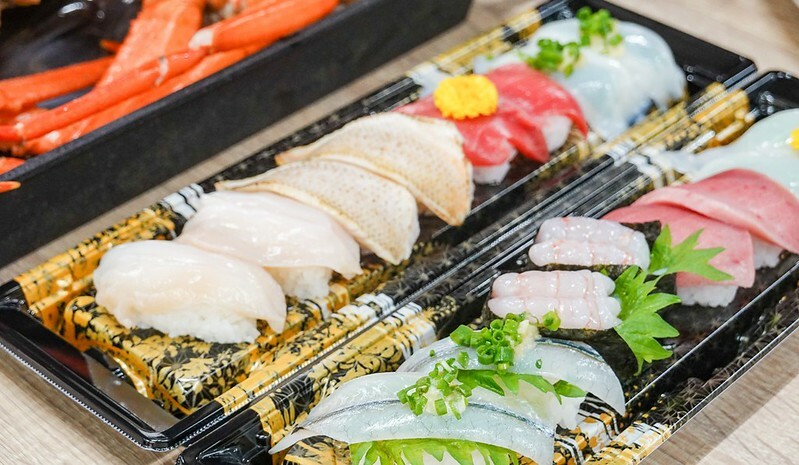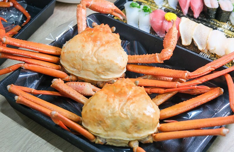 像這樣一整盒的生魚片、握壽司也很多,個人覺得六貫的握壽司物美價廉,畢竟光吃螃蟹很難吃到飽.....。