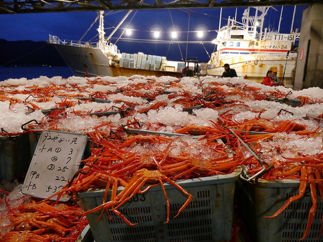 如果你有興趣也可以在產季到境港的碼頭參觀競標鳥取蟹的過程,文章參考【日本-山陰-鳥取旅遊】紅楚蟹競標.境港魚市見學:一場沈默的比價戰爭。附帶一提的是2021年在境港曾拍賣出一隻高達500萬日幣的高級蟹(五輝星),也是日本最貴的螃蟹。