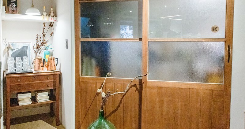 喜歡這有一點隨意懶散的書架和不清楚裡面是工作室還是烘豆室的木門。上端是清徹的玻璃,下面卻是霧玻璃,有趣的巧思。