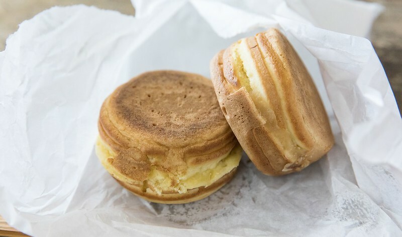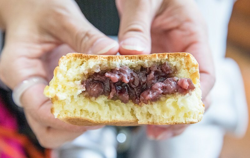 咬下後發現它的外皮和我們熟知的車輪餅不太一樣,走的不是酥脆的路線,反而有一點鬆軟甚至是一點點厚度,吃起來有一點像麵煎,帶點討喜的微黏,麵粉的香甜比之正常的車輪餅有存在感多了,裡面的紅豆餡雖然沒有很多,但非常札實,甜度也比我想像中低了不少。