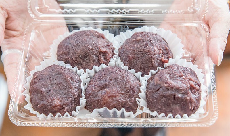 親切的佐賀阿嬤看到我望著那一盒十個おはぎ好條猶豫著,說了:「要買幾個都可以」,於是我比了個「5」。