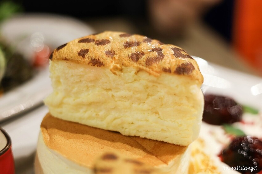 厚鬆餅整個就是非常鬆軟,如布丁般的軟嫩,而且最棒的是看起來很甜膩卻不會很死甜