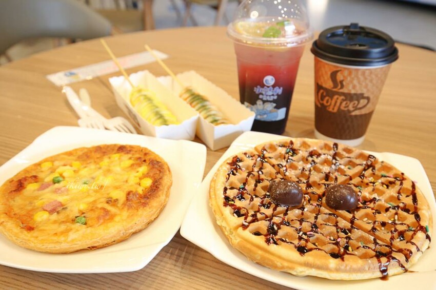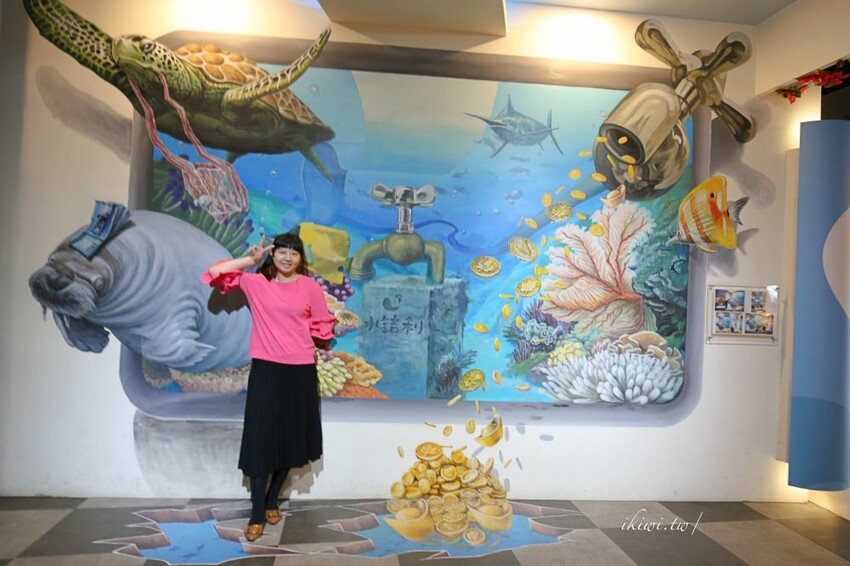 一樓的用餐區域,販賣著飲品、午茶甜點、簡單的點心鬆餅,孩子玩到餓的時候也可以在這吃吃點心用餐,休憩夠了再繼續玩樂,感覺甚好呢!秀水水銡利廚衛生活村結合水龍頭跟3D海洋彩繪牆讓你玩不完,還可以玩水、親子共遊區、手作體驗DIY都可以玩上大半天了呢!