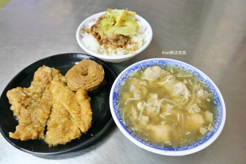 午餐時刻來彰化秀水吃美食,這家花壇肉羹近秀水國中附近,到了午餐時刻就會好多人來,建議早點來吃才不會撲空啊!Kiwi點上一碗肉燥飯、必點排骨、肉羹小碗,小碗的肉羹中有薄薄的勾芡,湯頭偏甜,裹上魚漿的肉,還挺好吃的。