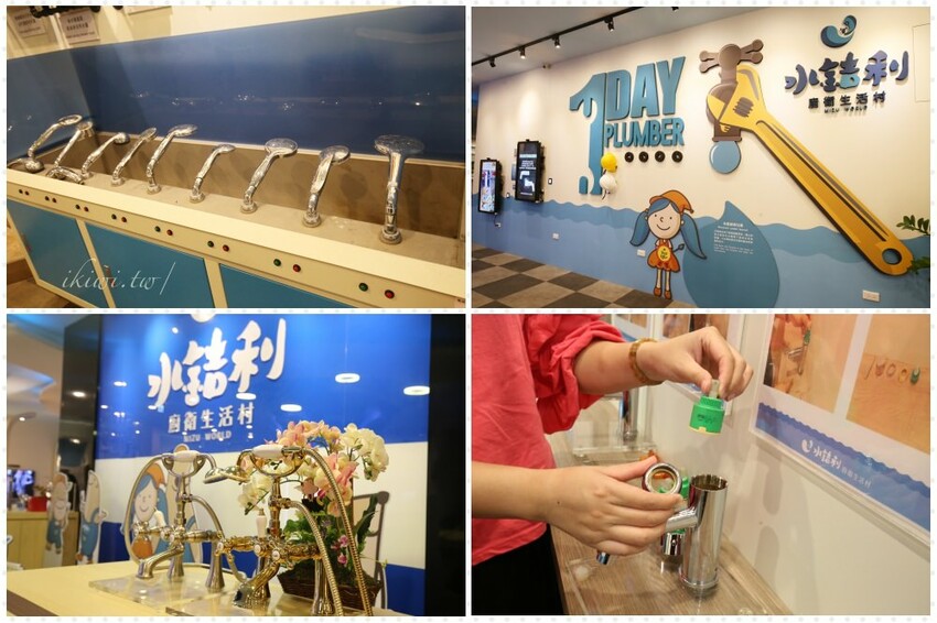手指動一動,你會發現原來蓮蓬頭有很多不同造型,加上想要像雪花感覺的洗澡或者是想要水柱方式的洗澡,通通在這都可以體驗後在進行挑選。在這裡還可以動動手當小小水電工來操作,了解水龍頭構造,也能了解水資源的知識,寓教於樂好愉快啊!