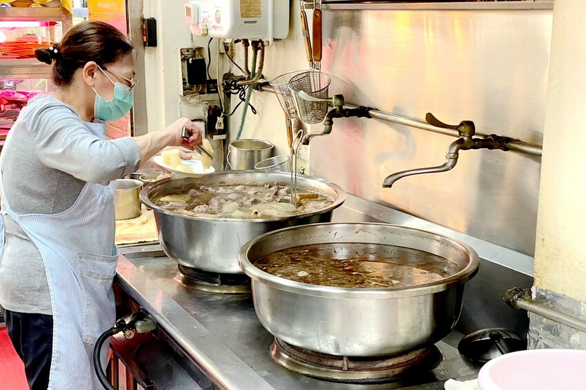 爐灶上是兩大鍋滿滿的滷味和黑白切,切料都會再燙過還不錯!