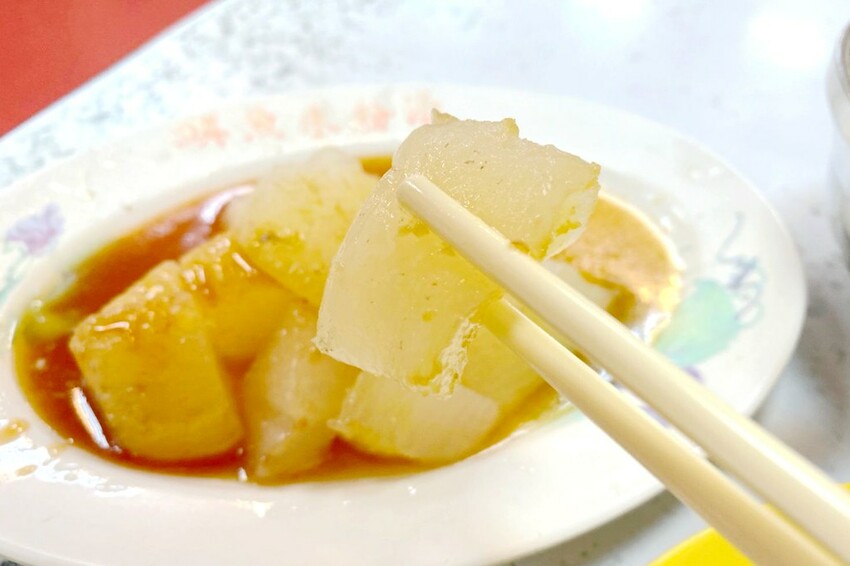 這蘿蔔滷得真的有夠透~在高湯裡熬煮多時