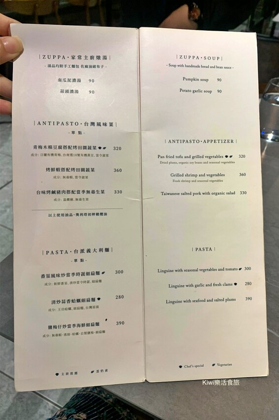 座位距離很接近,看來不適合說悄悄話,我們入座後的一小時裡,一樓座位額滿,平日鹽岸也太夯了吧!鹽岸-島嶼的義法料理菜單MENU