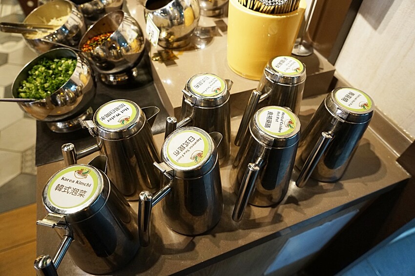 需要加湯時就來自助吧的乾貨區自取,壺上都有註明是哪一種湯底唷!
