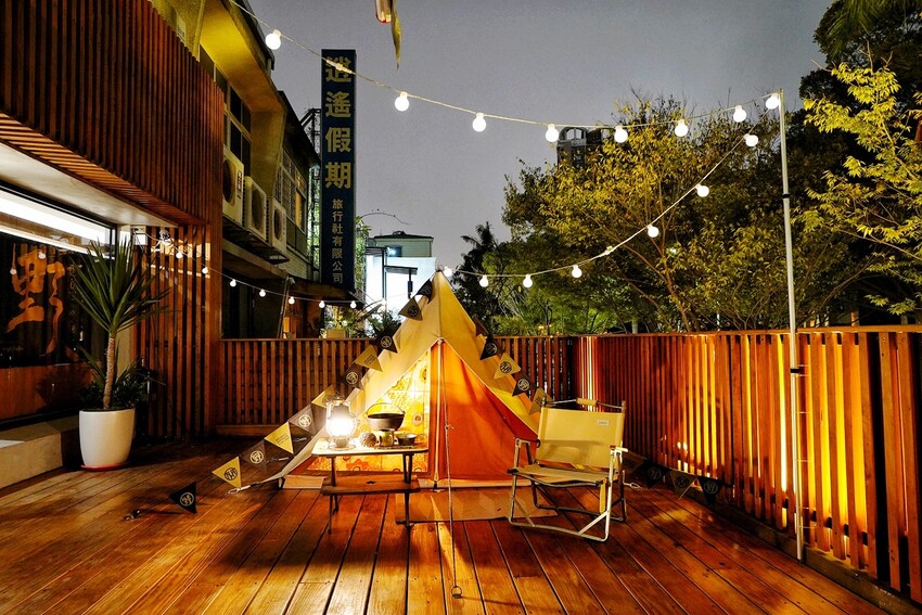 最特別的是「野人火鍋新竹店」二樓陽台還打造成戶外露營風的樣貌,親近自然的放鬆氛圍,一定要來這Chill一下。