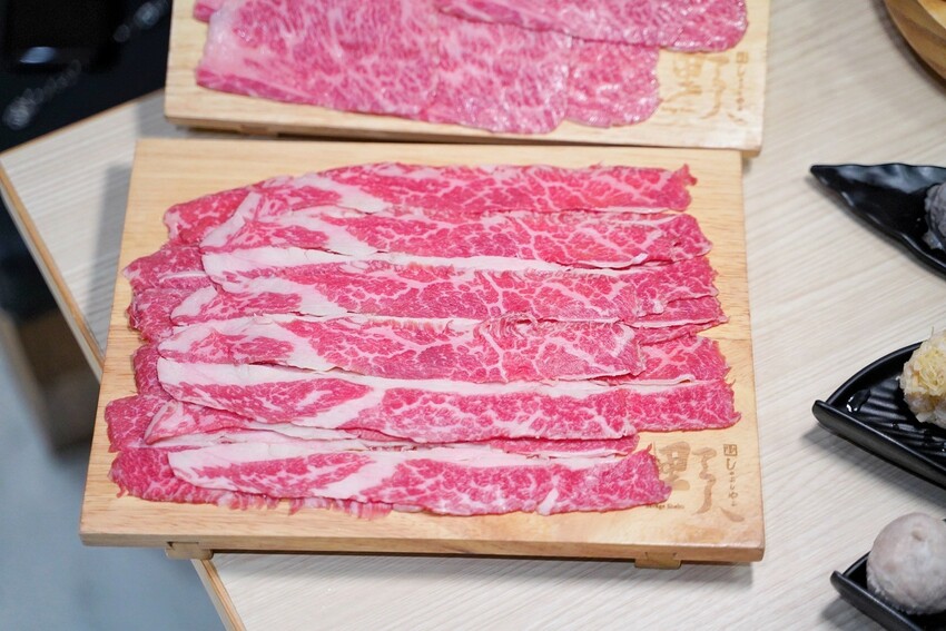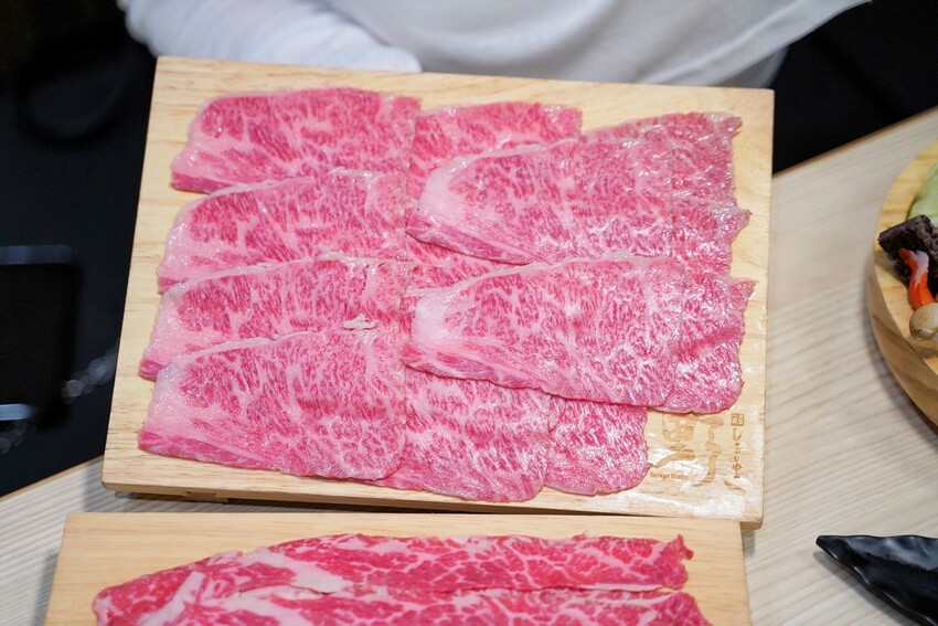 「日本最高級A5和牛背肩」是店內單價最高的肉品,也是油花分布最美的,涮個5-7秒即可享用那奢華軟嫩的滋味,選用活動量較大的肩胛部位,個人不建議加價增量,吃和牛適可而止就好,不然吃太多會有油膩感,反而失去享受美食的過程。