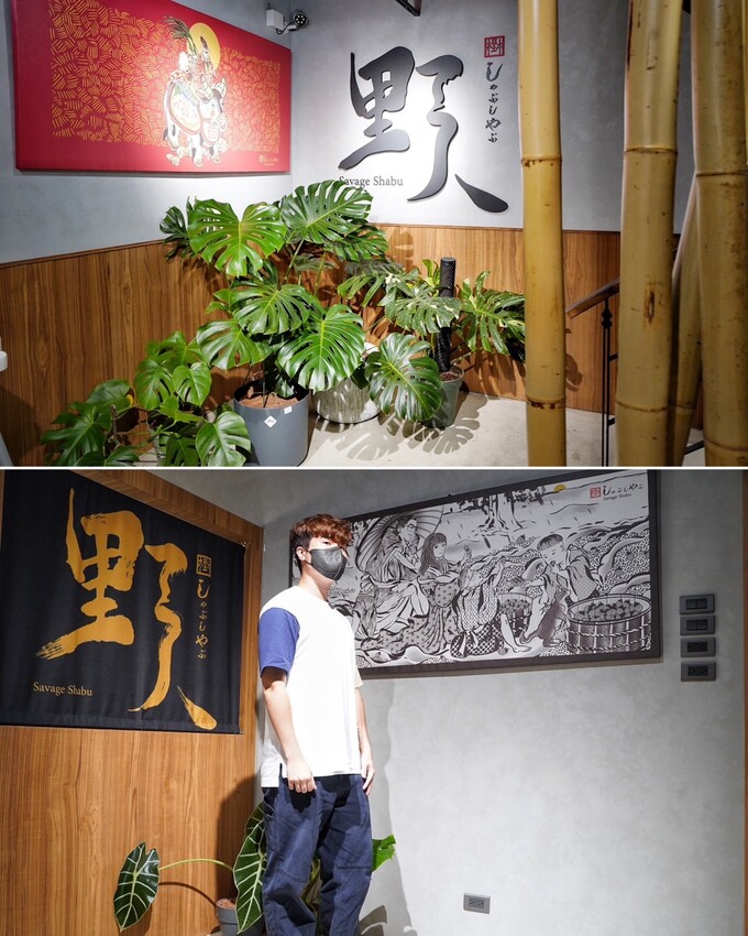 「野人火鍋新竹店」裝潢以木質調系為主且有濃濃的日式風格,使用相當多木頭、竹製品以及綠色植栽等元素,將整個大自然帶進店裡。