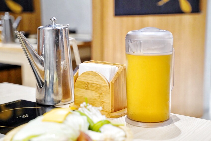 入座後,桌上有一壺無糖麥茶以及昆布高湯可以自行取用,採我最喜歡的一人一鍋用餐方式,揪多一點朋友來用餐,就能喝到更多野人火鍋的特色湯頭啦!