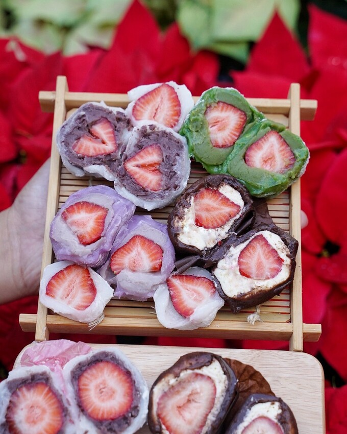 他們家的大福特色是外皮很柔軟但不黏牙,然後餡料很飽滿,草莓大顆又新鮮多汁,個人蠻喜歡紅豆草莓、芋頭草莓、可可乳酪草莓大福,整體甜度適中,可以說是老少咸宜的甜品!