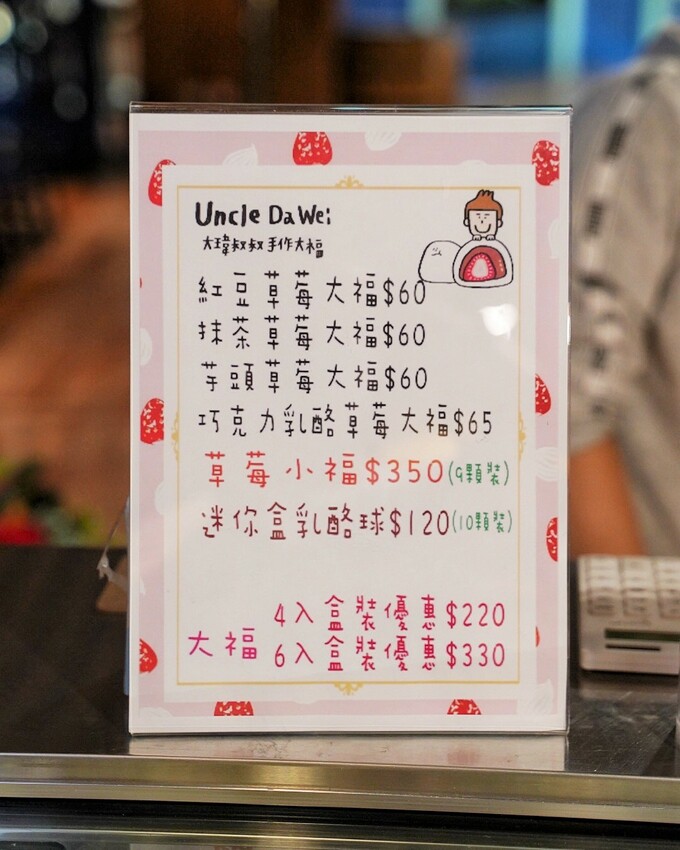 這回快閃現場主要販售各式口味的大福,還有純草莓小福,另有迷你盒乳酪球可以選購~