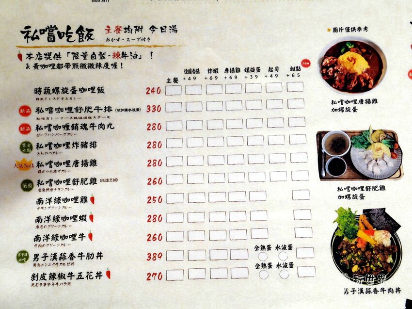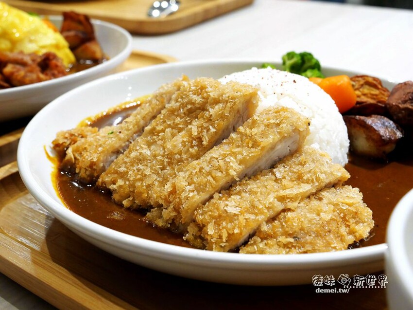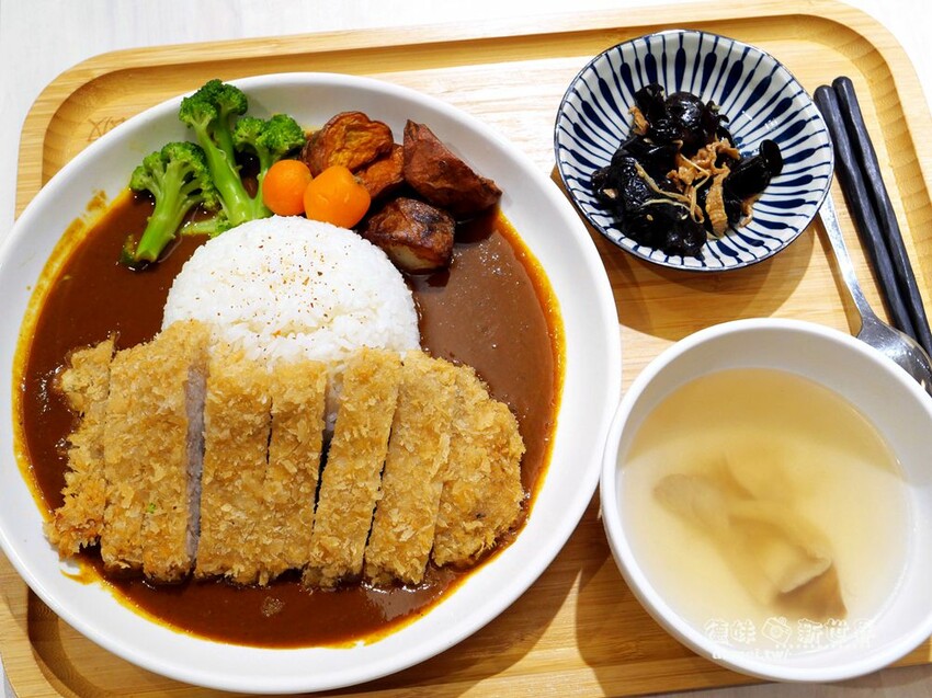 提供多款米飯類主餐,除日式咖哩外還有南洋綠咖哩、蒜香與剝皮辣椒,
