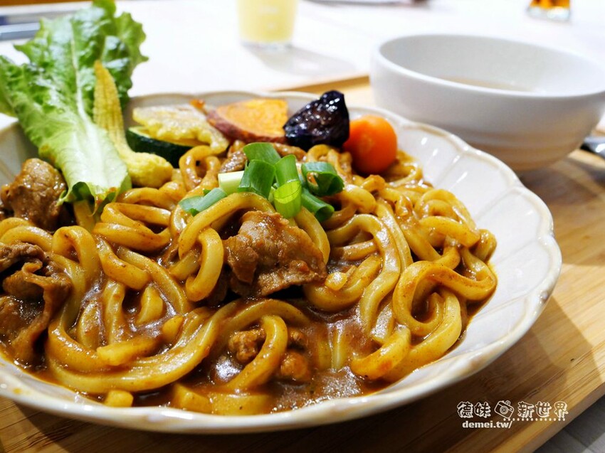 烏龍麵Q彈有勁不軟爛,濃郁咖哩偏向日式蔬果又帶著新鮮薑黃的微辣度,食多不膩,