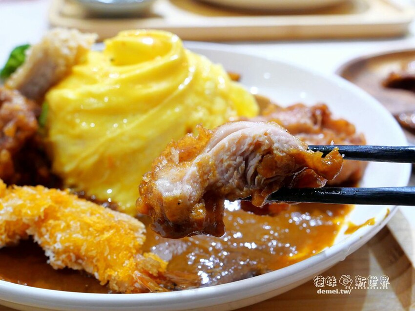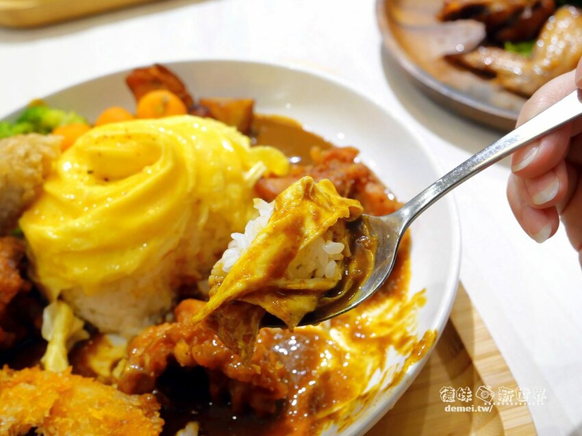螺旋蛋口感薄嫩濕潤推薦必加,日式咖哩醬濃郁微辛辣、尾韻帶有蔬果甘甜,