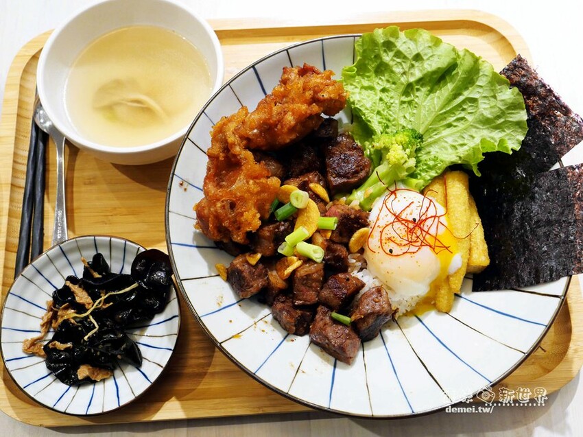 木托盤上桌方便且具質感,$250元呈現最原始無加料的份量,均附當日湯品。