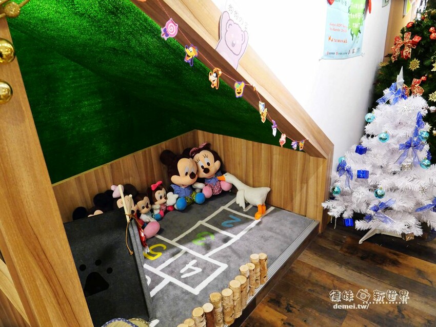 梯下空間也充分活用,設置溫馨可愛的小空間讓毛孩拍照打卡,