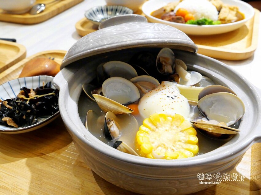 湯頭有薄薑片去腥,玉米和紅蘿蔔、菇類等釋放出自然清甜,大量蛤蜊增添海味精華。