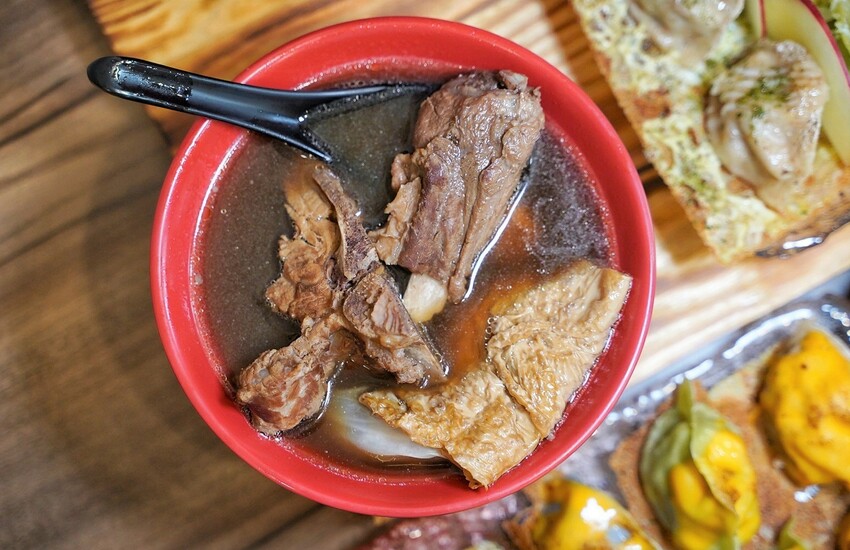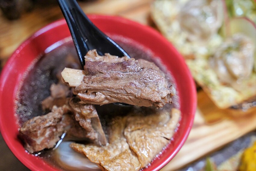 天氣漸漸轉冷,來碗熱呼呼的「養生肉骨茶湯」暖心又暖胃!湯頭以數種漢方藥材下去熬煮,裏頭的排骨幾乎是骨肉分離,食材還有貢丸、高麗菜等等,一口鹹香夠味的煎餃,搭配一口溫潤順口的湯頭,真的好滿足~