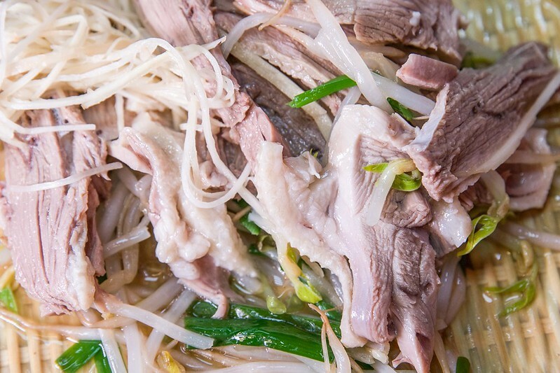 我記得切的是鵝腿肉150元,份量大約是剛剛那碗鵝腿麵的一半,肉質軟嫩帶點咬肉汁,帶皮的部份軟Q有著不錯的油甜,要說多好吃沒有,就是中規中矩,喜歡配著豆芽一起入口。