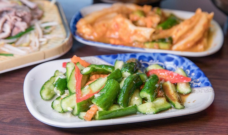 老闆招待的黃瓜,調味還不錯,但就是一般小吃店能嚐到的美味拍黃瓜,微微的蒜味蠻討喜的。