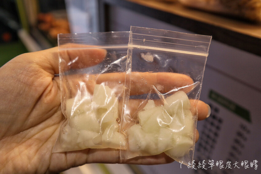 特別推薦大家可以客製化加辣椒或蒜末唷!另外店家還會免費送給客人自己手工製作的醃蘿蔔,口感爽脆、相當開胃解膩!