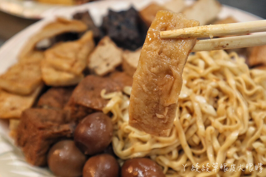 怕吃不飽的朋友可以加點秘醬乾麵,秘醬滷味的秘醬乾麵還有加上獨家紅蔥,乾麵Q彈好吃,同時吸附滿滿的特製滷汁,隱約還有花生的香氣,老闆說沒有加花生,不過的確很香就是了XD