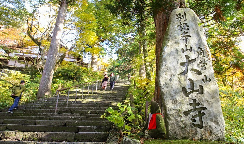 從這開始,你們一邊爬石梯、欣賞紅葉,我一邊跟大家介紹鳥取大山寺的歷史及由來。大山寺興建於西元718年,由俊方(金蓮上人)所創建,至今約有1300多年歷史,平安時代全盛時超過100間寺院及3000名僧侶在此修行和比叡山、吉野山、高野山合稱日本四大名山。好景不常,明治時期以「神佛分離・廢佛毀釋」為開端,急速衰落,現存寺院只剩4個參拜堂和10個分院。