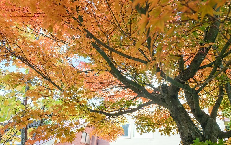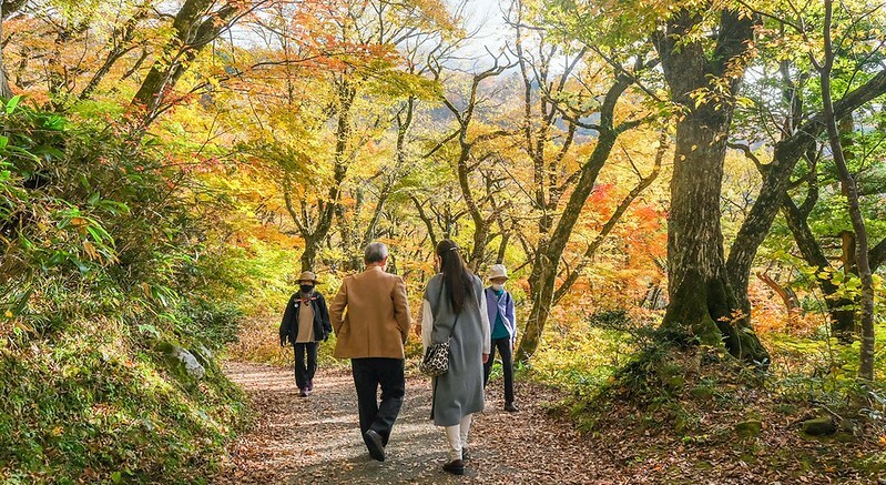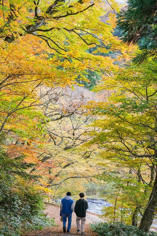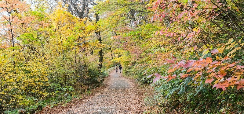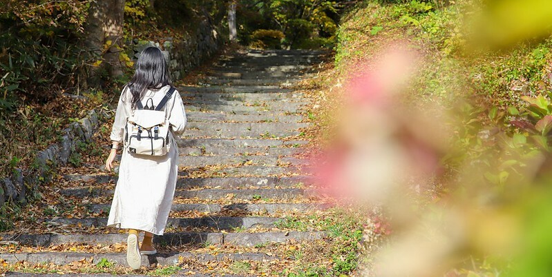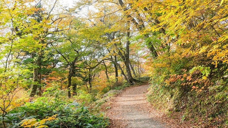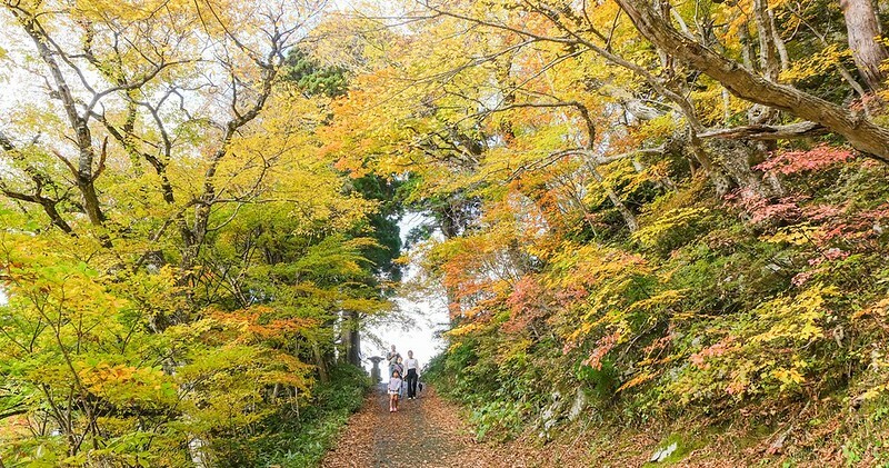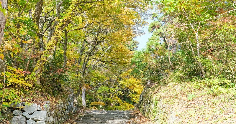 看地圖不覺得,但事實走來還算蠻陡的,又是坡道又是石梯,但幸好兩旁美不勝收的紅葉相伴,加上有一點微涼的氣候,挺舒服的。