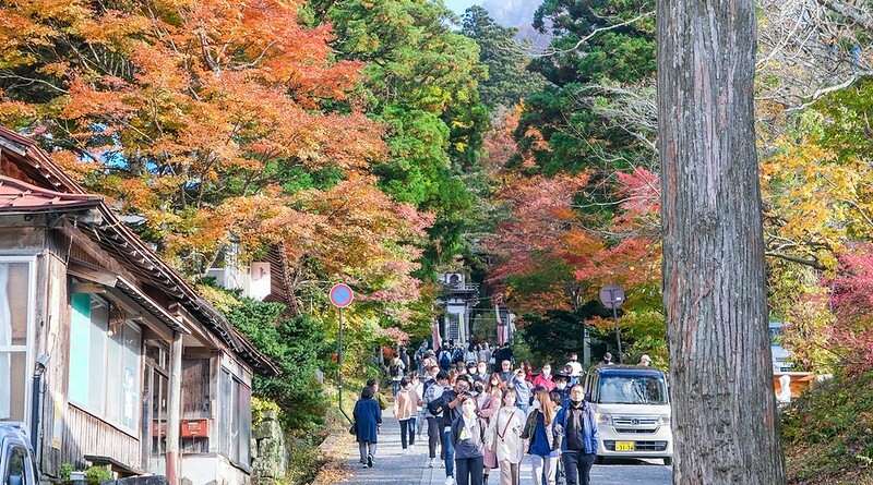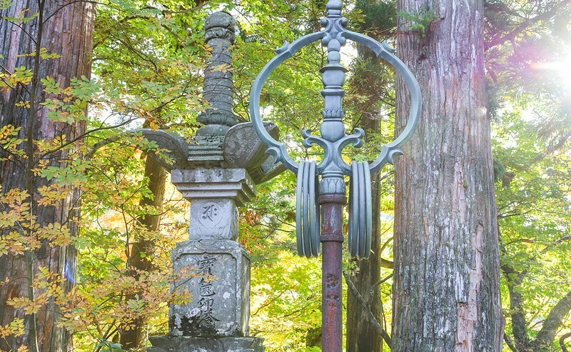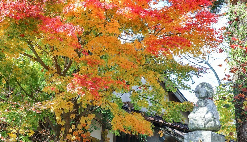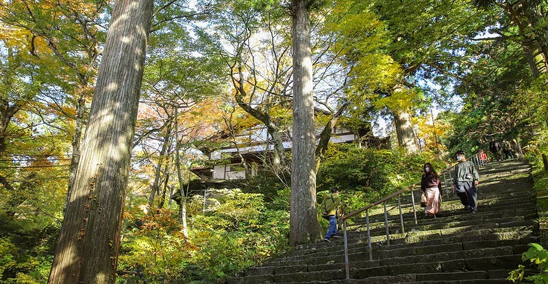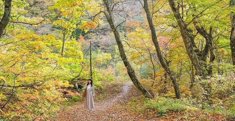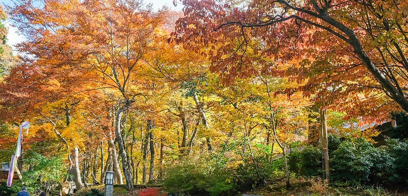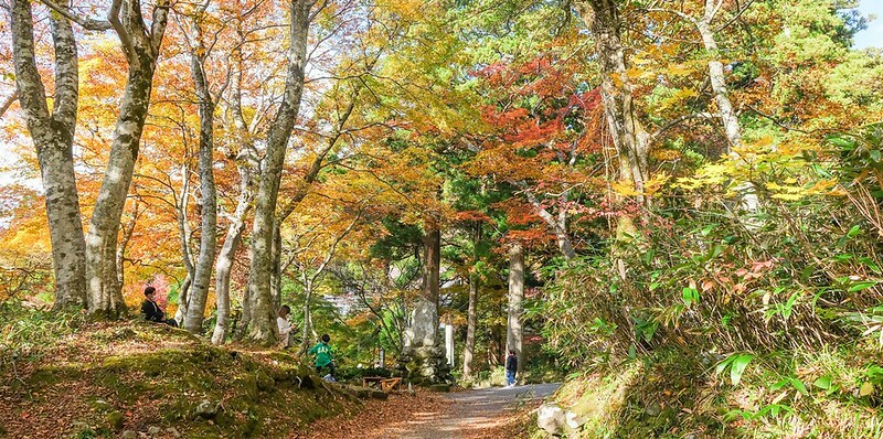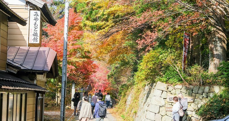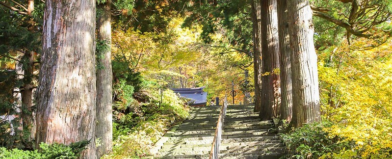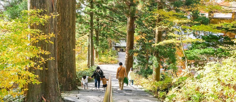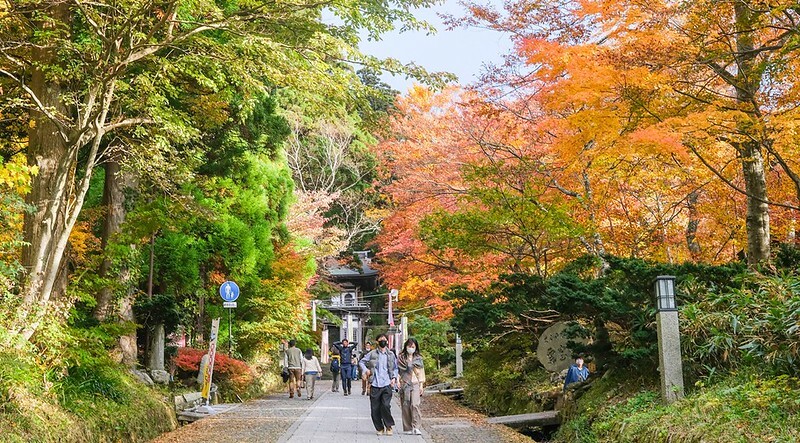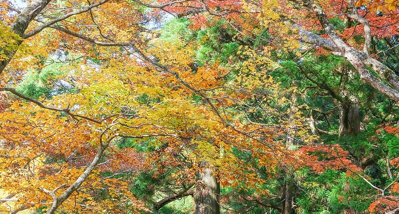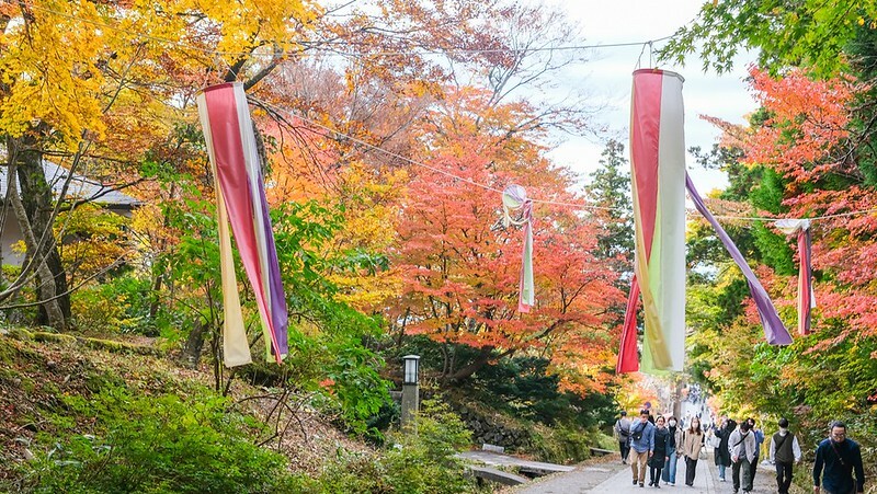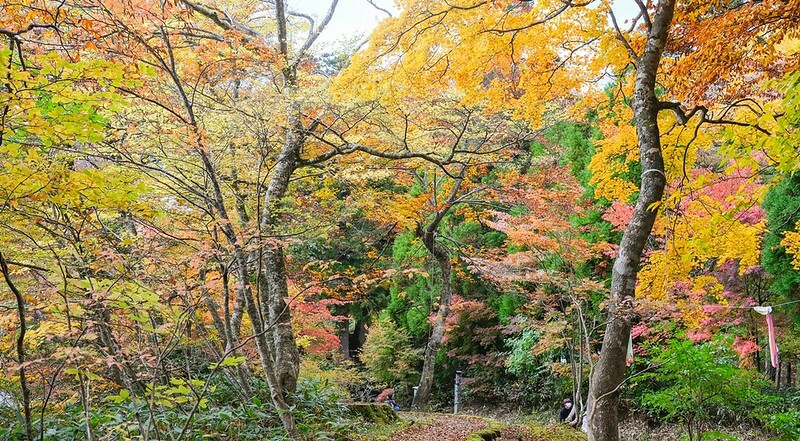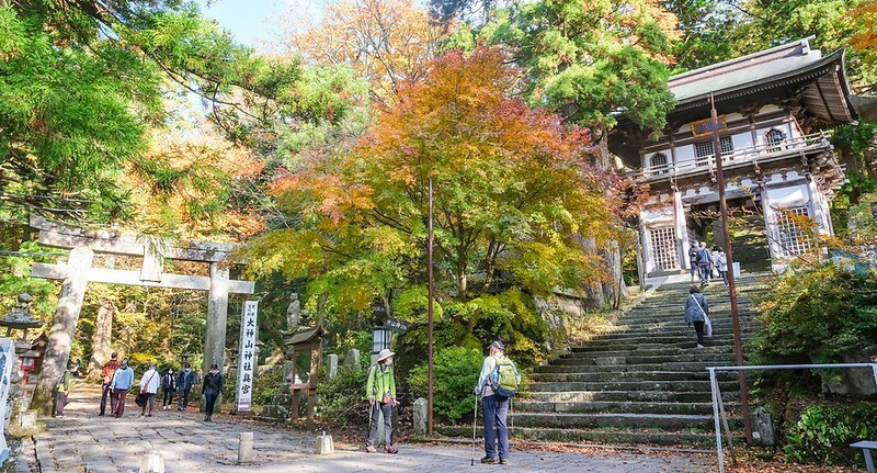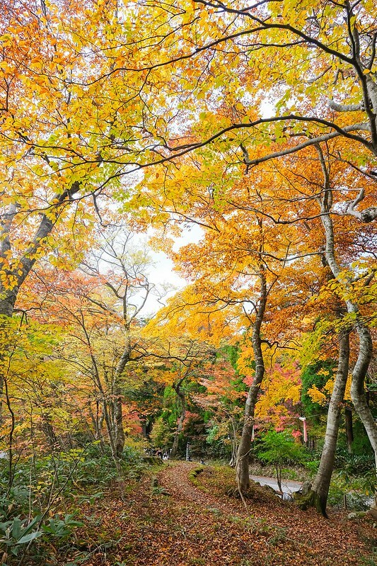 接著是大山寺靈寶閣的一片綠蔭,11月初變成一道紅、橘、黃、綠交錯的紅葉隧道,美得讓人捨不得前進。