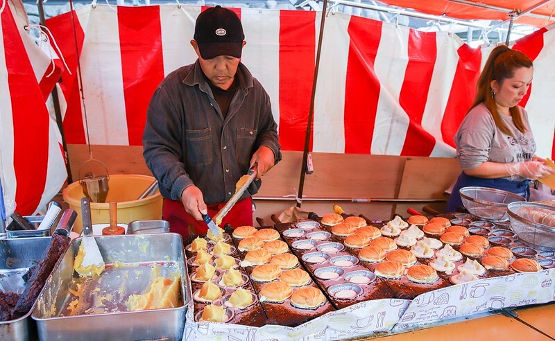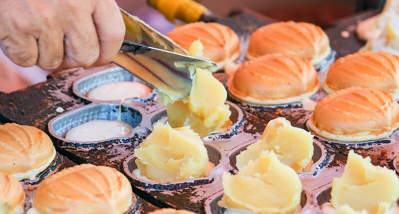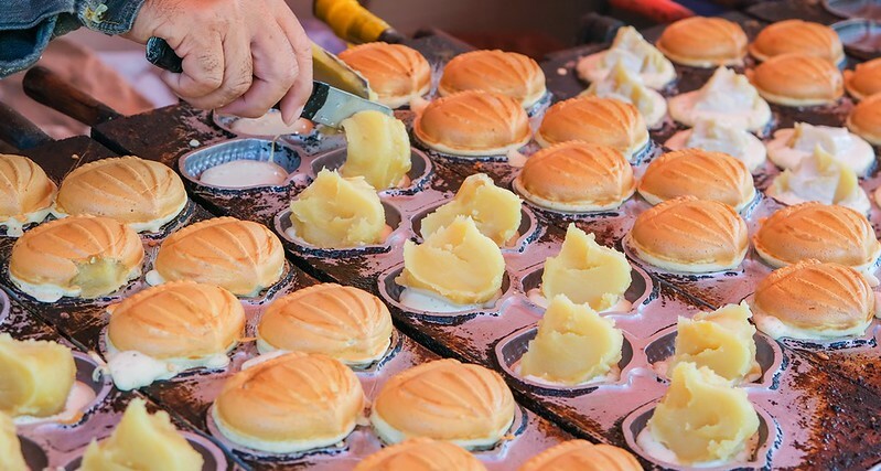 接著是感覺還沒在疫情的影響下完全恢復生機的商店街和寺前小攤,但這攤大山名物栗子燒,遠遠的就呼喚著我們,視味覺同時。