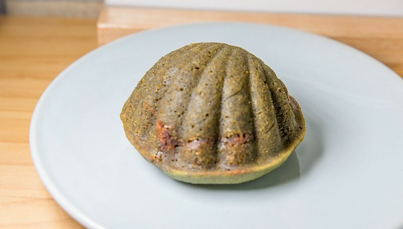 紅豆抹茶瑪德蓮,造型有一點像蚌殼蠻可愛的,口感滋潤而札實,抹茶的微苦很到位,紅豆不多卻很有存在感,不管是味道還是口感我都喜歡。