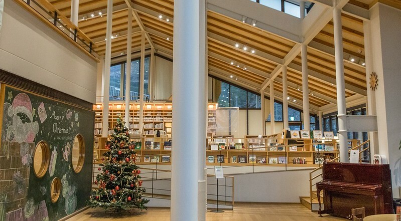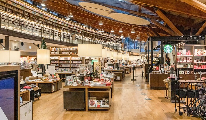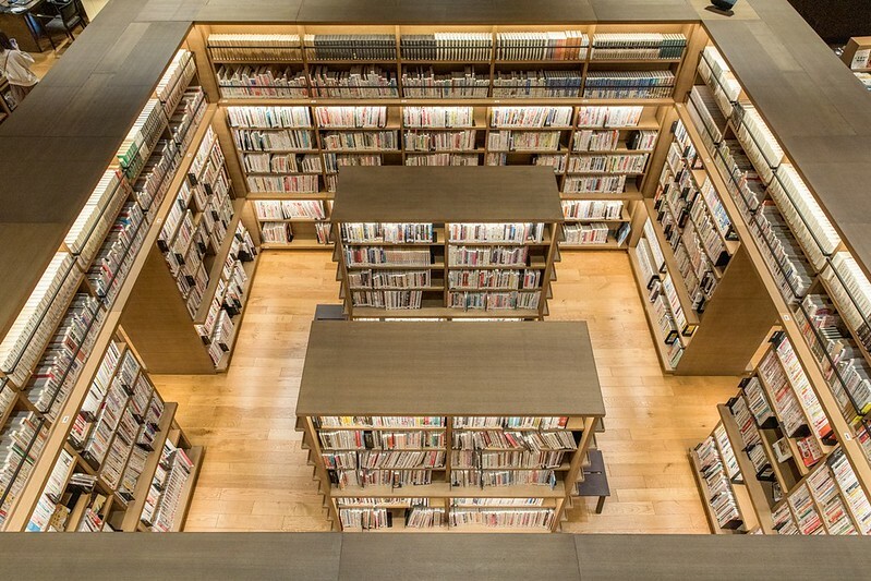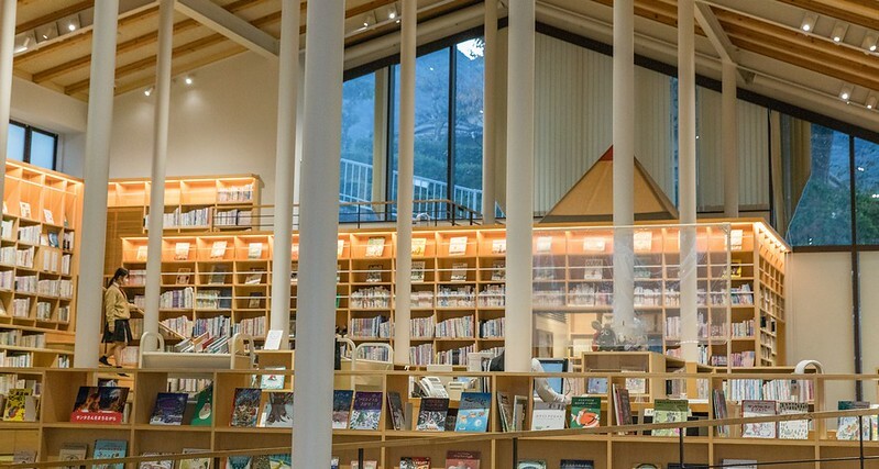 說是圖書館,但有不少角度,或是大部份的角度,你會覺得它像是一座巨大的書店。沒錯,當初圖書館的翻修就是依著和蔦屋書店合作的概念去設計,就像咱們基隆的太平青鳥山海書店。
