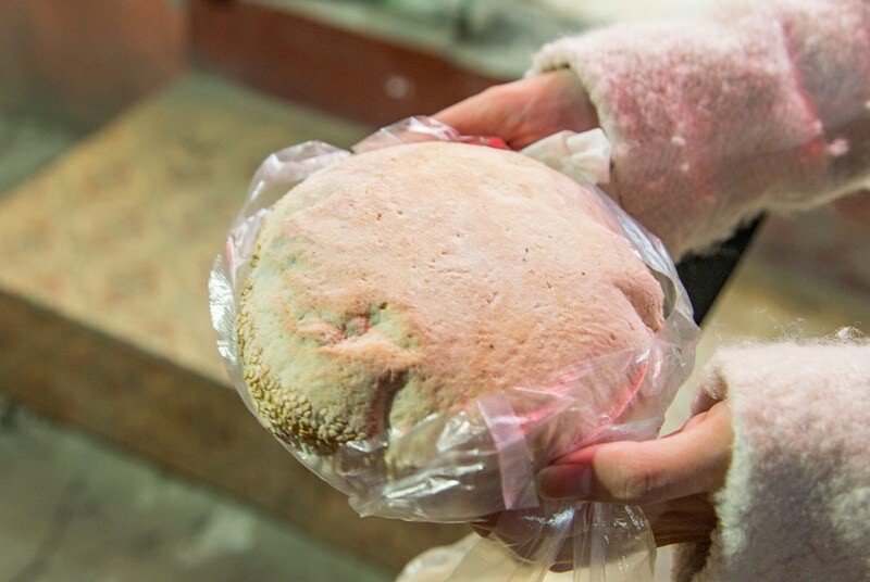 接著掀開烤爐上的鐵盤,把餅像胡椒餅般貼在爐邊火烤,這個動作也幾乎是一模模一樣樣。只是徐記用的是瓦斯火,而襄陽用的是碳火。